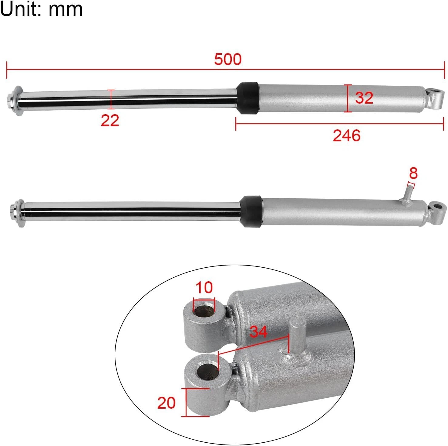 Pair of front fork shock absorbers suitable for small off-road motorcycles.
